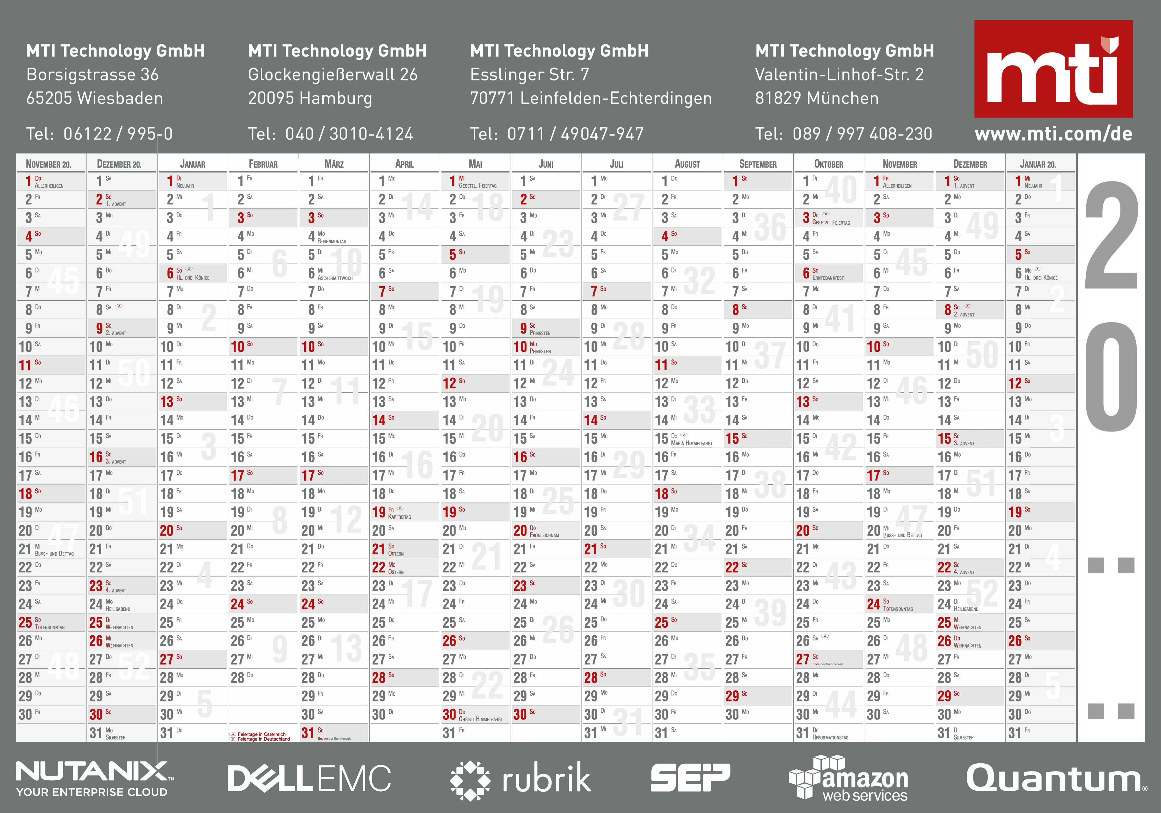 Kalendarium mit 12 ; 14 oder 16 Monate mit oder ohne Schulferienübersicht